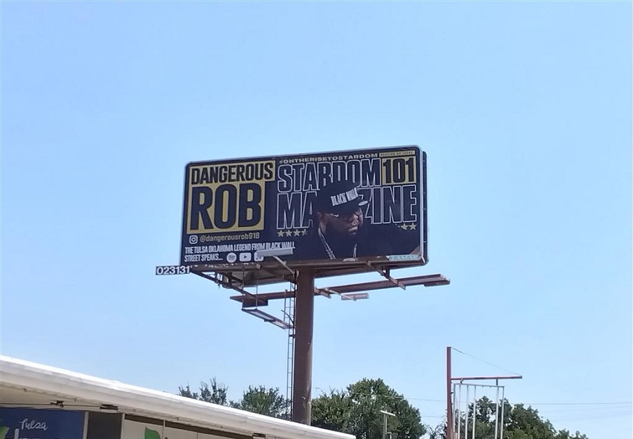 Tulsa, OK – Stardom 101 Magazine, in collaboration with Tulsa’s own hip hop artist Dangerous Rob, has unveiled a commemorative billboard in North Tulsa at the historic corner of Apache and Cincinnati (Martin Luther King Jr. Blvd).